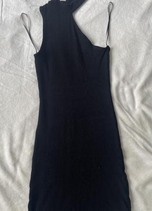 Чорне плаття, дуже гарна якість, воно не колеться, мʼяке) не просвічуеться, і дуже вимальовується стрункіша фігура, також гарно тягнеться і тому підійде на Xxs/Xs/s/m