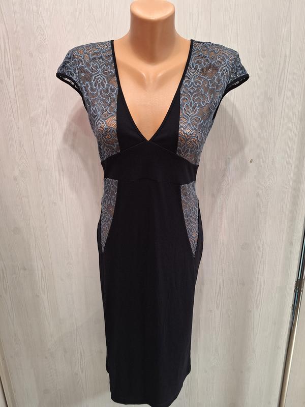 Платье по фигуре. Трикотаж (не просвечивается) с кружевом. Красиво ложится, ткань тянется. Имеются разрезы 46,48.
