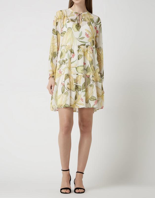 Легкое ярусное платье туника длинный рукав на резинке Имеет нижнее платье из приятной вискозной ткани Плечи 46 Рукав 65 Пог 62 Бедра, талия - свободно Длина 98
