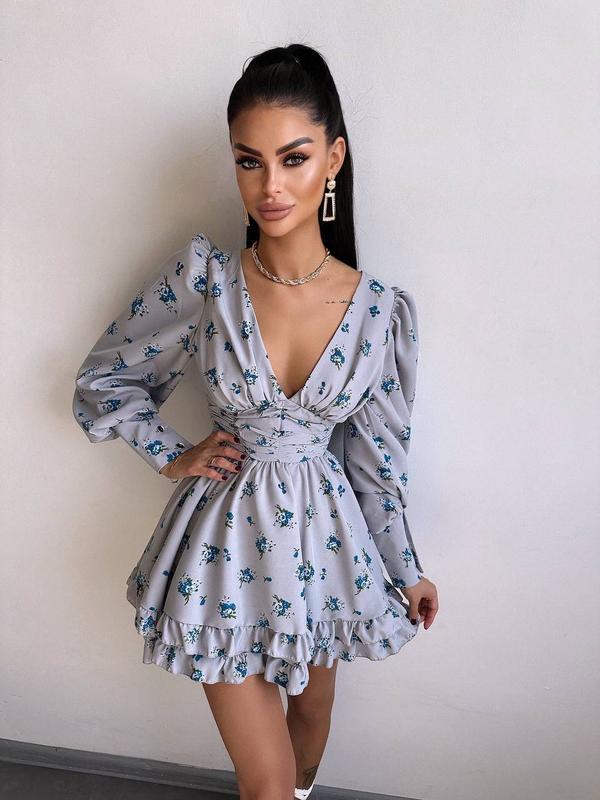 Платье мини с пышной юбкой и драпировкой на талии