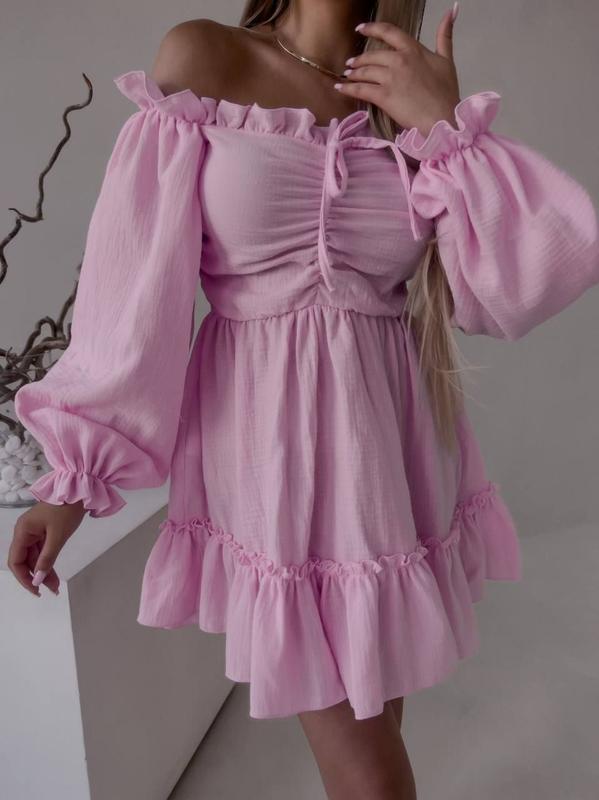 платье🌺 очень нежная и романтичная, с длинным рукавовым фонарик на резинке, талия на резинке, спинка прострочена, по низу оборка🌹 Арт. 1.0/3/09/0013А Ткань: качественный натуральный "Муслин" Состав: 100% хлопок. Цвет: белый, черный, розовый, голубой, барби желтый Размеры: с-м; м-л Размер: с-м(42-44) Об.. гр. до 92 см. Об.талии до 68 см. Длина 83 см. Размер: м-л(46-48) Об. гр. до 100 см. Об.талию до 78 см. Длина 86 см. В2В