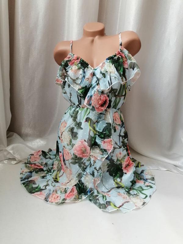 Дуже красива сукня з шифону квітковий принт можна носити у трьох варіантах закривши плечі...