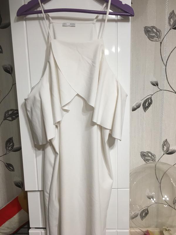 Невероятно красивое белоснежное платье известной фирмы,размер L,очень нарядное и милое,плечи открыты,крупные воланы делают платье эффектным