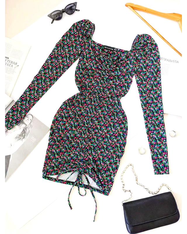 Трендовая мини-платье/платье/платье в обильные цветочки💐 на затяжке от plt, на р. xs/s 💔