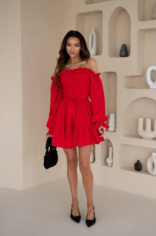 Муслиновое платье с пышной юбкой и открытыми плечами