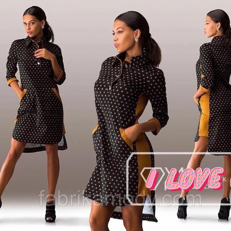 Модель 876 платья новая Цена 330 грн. Размеры: 42-44 Ткань: принтованный стрейч коттон + французский трикотаж, пуговицы рабочие, по бокам карманы. Длина: 95/85 см, рукав от плеча 42 см Параметри 42-44 ОГ-90 см ОБ-100 см Черный код1805(диа)