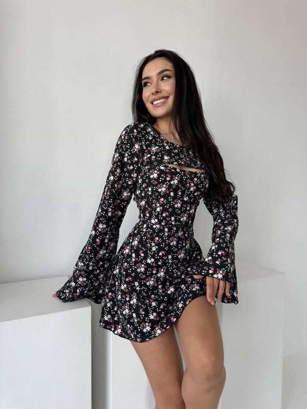 Летнее корсетное платье сарафан мини в цветочный принт с завязками