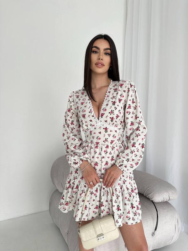 Мод:210 Реал фото 📷 ▪️Тканина: принтований софт ▪️Розмір:40-46 (регулюється завʼязками) ▪️Колір: білий у квітку Заміри Груди: 80-95 см Талія: 58-72 см Стегна: 82-99 см
