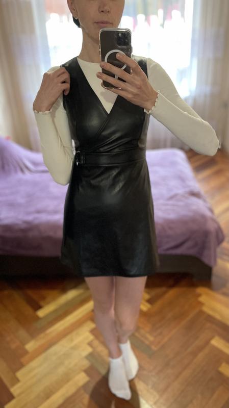 Плаття-сарафан з екошкіри розмір S гарно тягнеться,підійде для дівчат невисокого росту до 170см,мій ріст 176 тому воно закоротке,дуже гарно сідає по фігурі