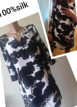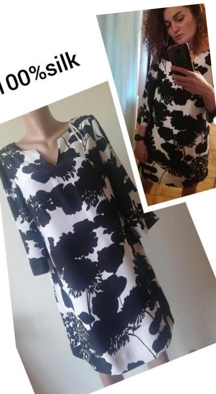 Шовкова сукня. Прямий крій Розмір L Ідеальне платтячко 100%шовк Розмір L підійде і на М Свобідний крій Одягнуто на М ріст 165 Плечі 38 Рукав 45 Ог під рукавами 51 Довжина 88