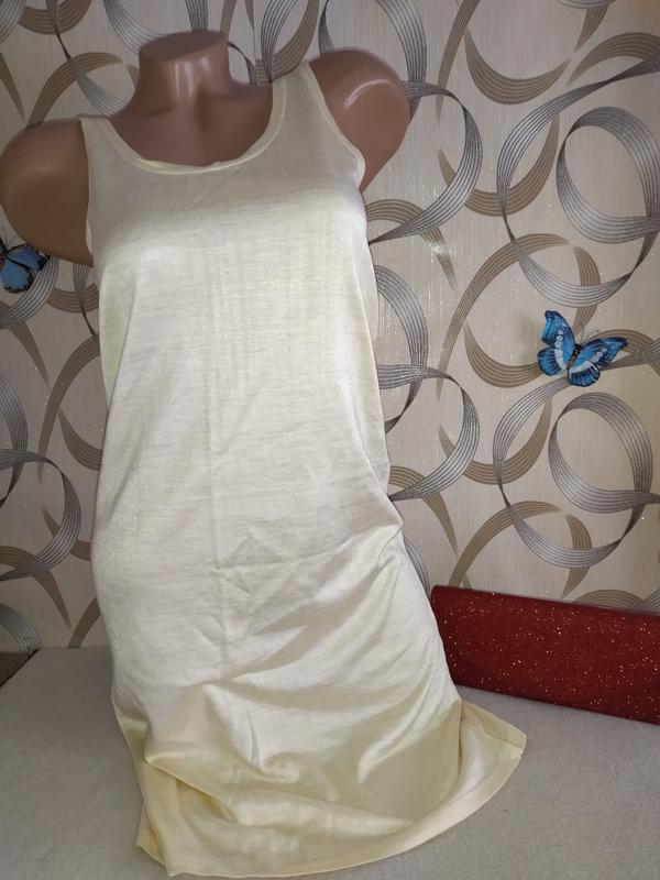 Летние модное платье - майка, подойдёт на 44-46 р.Цает жёлтый, ткань с переливом.Состав не указан.Ткань тянется.Без дефектов.Замеры предоставлю в личные сообщения
