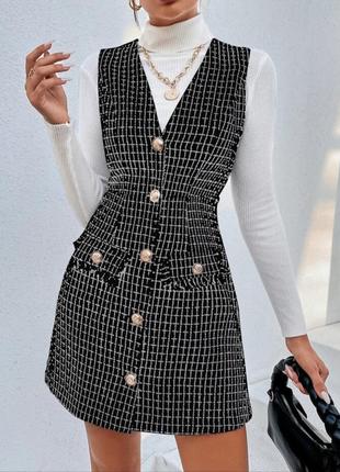 🌿сарафан твід Shien з красивими гудзиками, тканина цупка, гарно тримає форму Розмір:S Заміри:ПО грудей 43 см, ПО бедер 47 см, довжина 80 см