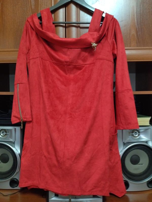 Красное короткое коктейльное платье. Размер 52 на рост примерно 165 см. Ткань тяжелая, плотная, под замш. Бока удлиненные. НОГ 54 см, НОТ 52 см, НОС 58 см, довжина 89/95 см.