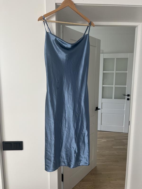 Не долгое, атласное, стильное платье на брителях. По наборке размер L но это маломерка