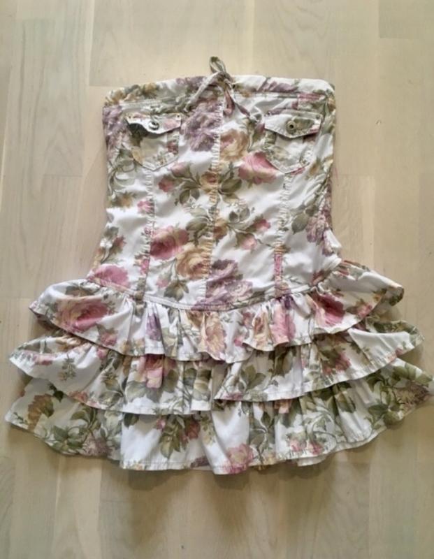 Літній сарафан без бретельок з відкритою спинкою. Одягнений декілька раз. Чудова якість. Тканина особливо не мнеться й легко прасується. Заміри за вимогою.