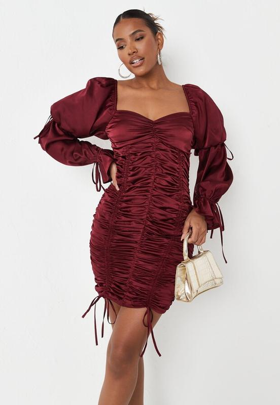 Изысканное платье/платье жатка на завязках с рукавами фонариками