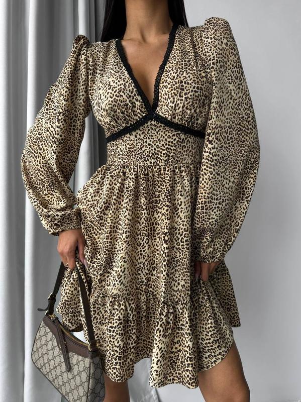 💫Трендова Сукня ⭐️Цвет: принт лео ⭐️Размер: 42-44, 46-48 ⭐️Материал: софт ⭐️Платье в трендовом принте, декорированное тонким кружевом, молния сбоку ⭐️Цена: 690 грн мод 811-322