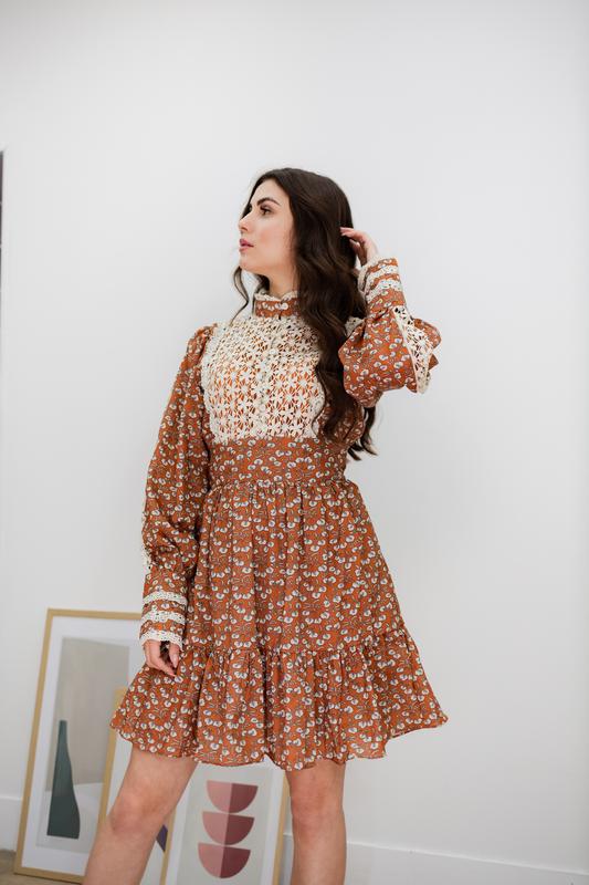 Невероятное платье с французским кружевом - платье на подкладе - на груди застегивается на пуговицы - воротник стойка