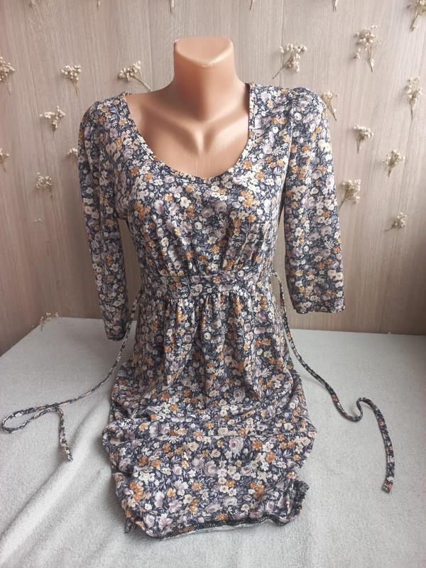 Красивое платье с связками с цветочным принтом, рукав 3/4👍 Идеально садится по фигуре👐 Размер s-m НОГ - 42см. НОТ - 37см. Длина - 85см. Пишите, с радостью ответьте на ваши вопросы👇