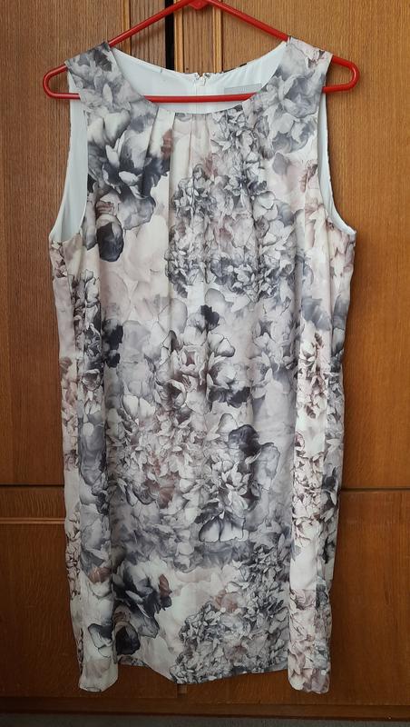 578 Легкое женское платье без рукавов, свободного кроя. С чехлом внутри. Можно носить с поясом. Состояние очень хорошее. На подкладке, внутри есть черные пятна, но снаружи их не видно. Размер M/L. Ширина плечей 33 см Ширина груди 54 см Ширина бедер 56 см Длина 92 см.