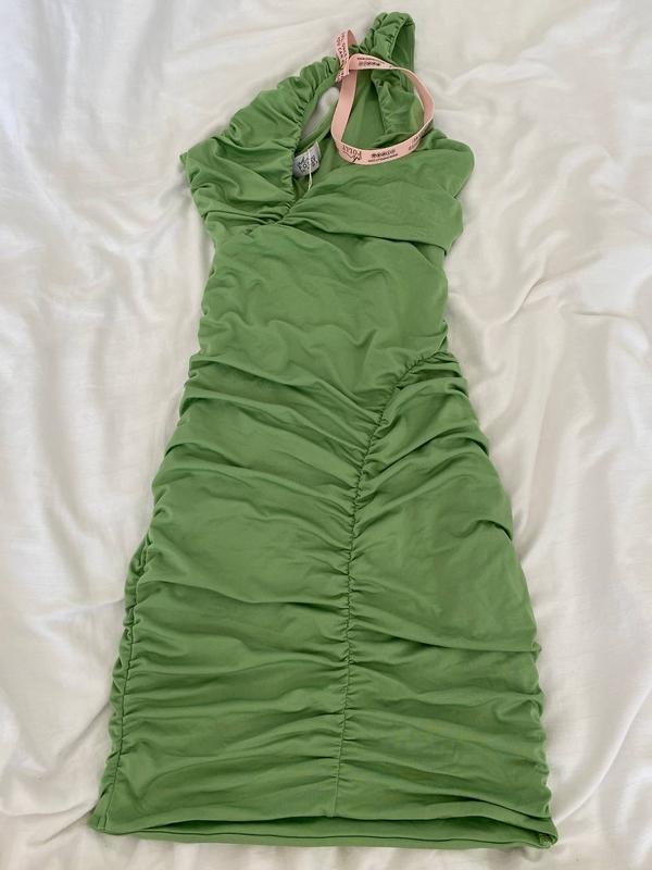 Асимметричная мини-платье зеленого цвета с сияющим вырезом, новинка с биркой.