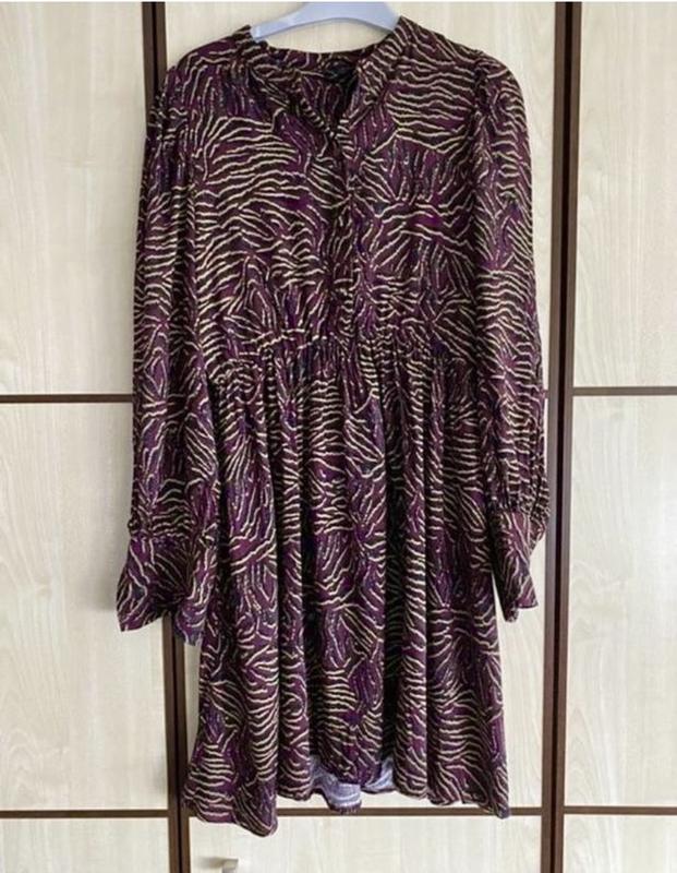 Платье из 100/ вискозы. Состояние новрй вещи. По плечам 35 см, от верха до талии 35 см. Рукав 62 см, по талии резинка 33 и тянется до 48 см. По груди 46 см. По низу юбка 90 см, по бедра 68-75 см. Длина платья 86-88 см