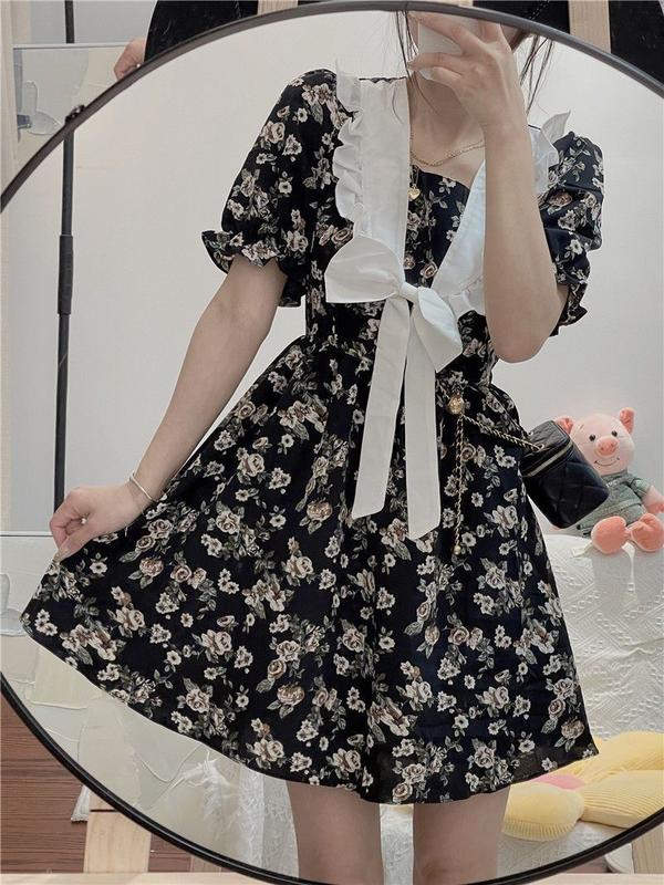 Платье с цветочным принтом и белым воротничком очень гармоничное и трендово больше фото при необходимости снаряжения замеры: обхват грудей: 88см длина платья : 89см линия талии : до 80 см