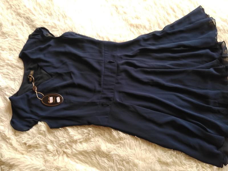 Совсем новое шифоновое платье, темно синий цвет, указан размер 40,но скорее идёт на наш 44.Покупала з тисячу с хвостиком,продаю наинооого дешевле.пог 48, длина 84,пот 38