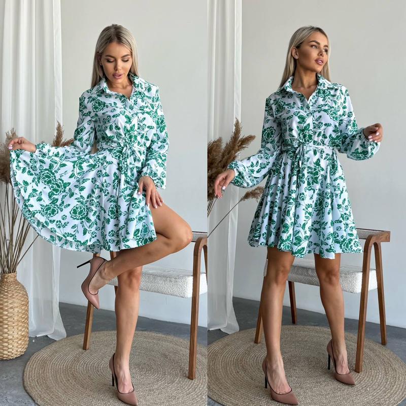 Модель 5523-1498 Женское платье Размерный ряд S,M,L,XL Ткань софт ( очень приятный на ощупь, не просвечивается) Цвета голубой, синий, трава и хаки Платье застегивается на пуговицы Очень стильная модель У комплекті пояс Рукав длинный, манжет на резинке Супер качество Цена 729 грн