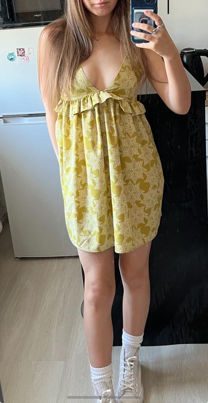 Размер хс-с, состояние идеальное, на лето супер, удобное платье, приятная ткань и легкая, не просвечивает