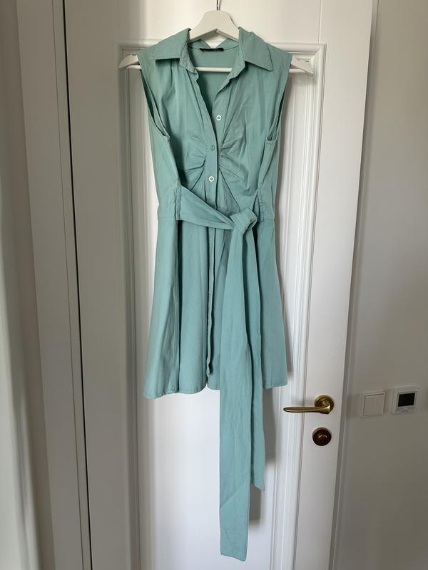 Тканина дуже добре тягнеться Напівобхват по грудям 46 см (є виточкі, підійде на великі груди) Напівобхват по талії 44 см Довжина 78 см По бірці розмір С, та більше підійде на М