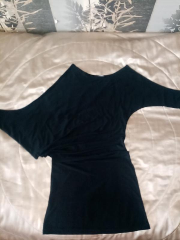 Маленька чорна сукня,один рукав летюча миша, оголене плече. Довжину можна регулювати як від дуже короткої і до колін. (звичайно в залежності від росту)