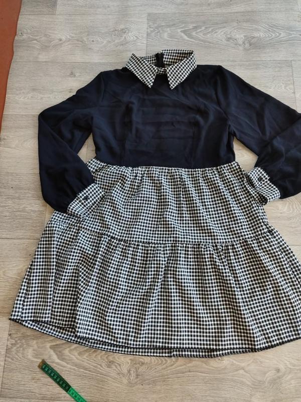 Красивое комбинированное платье,грудь 50см,пояс 45см, сзади по спинке молния