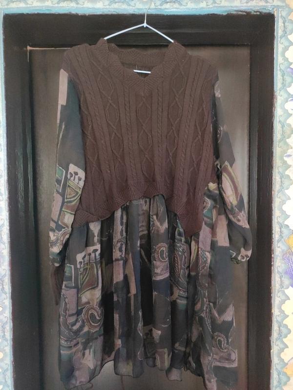 ширина в плечах 45 полуобхват в груди 55 длина от плеча и вниз 85 длина вязки от плеча 40 длина рукава по нижнему шву 56