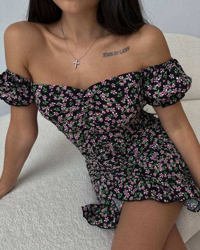 Настільки життєрадісні, жіночні та барвисті образи дарують нам гарні сукні з квітковим принтом Тканина: софт Ромір: 42-44, 46- 48 Колір: чорний у квіточку
