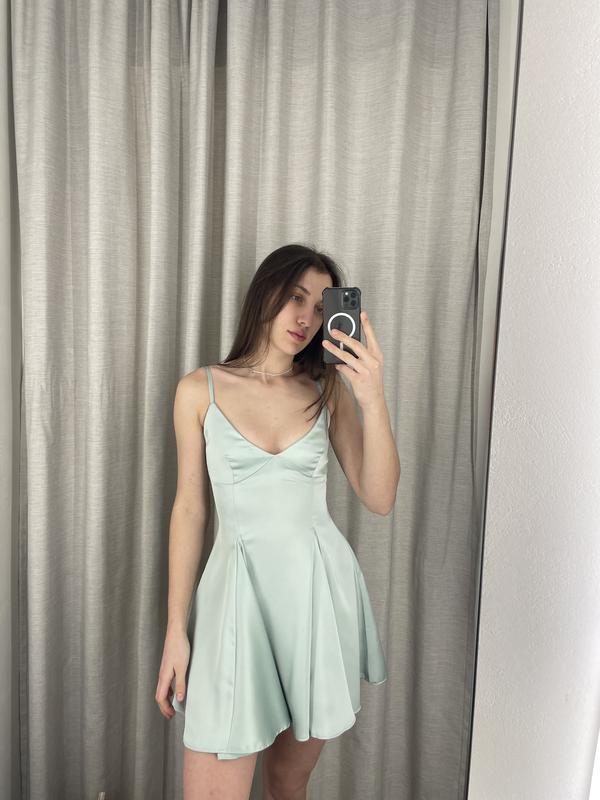 Платье мини мятного цвета от бренда Cher 17. Не одевалась ни разу, так как для меня некомфортная длина. Одет на параметры 93-71-103, рост 178. Купувала за 1100