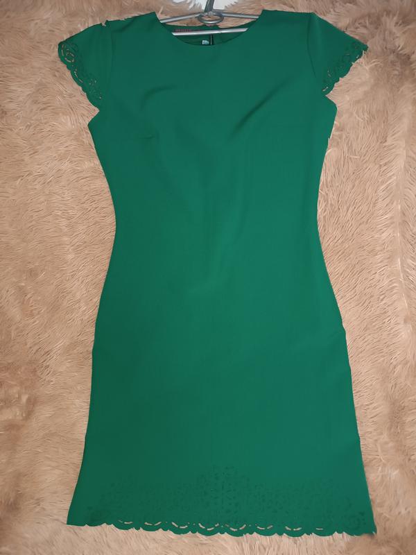 Женское летнее платье с вырезанными узорами снизу платья и на рукавах. На спине на замочке размер 44 состояние новой, без недостатков, одетых 1 раз