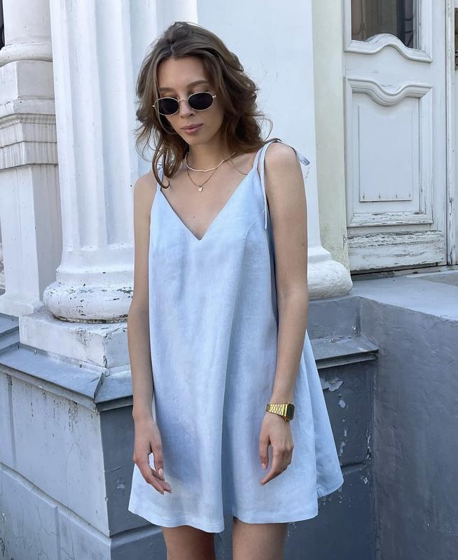 Невероятно легкое, летнее платье, трендовый фасон Длина регулируется на завязках Ткань натуральная, ничего не парит Спинка лучший акцент образа😍 На лето идеально Длина: 85 см Объем груди: до 90 см Стегна: до 120 см