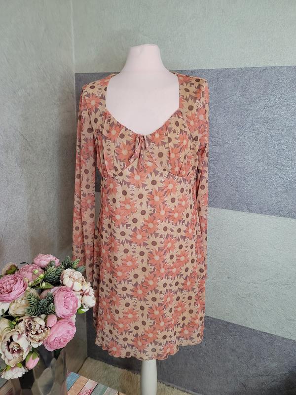 Платье красиво тянется, с шикарным принтом, очень красивое декольте, цветная гамма очень нежная. Фирма primark Фото на теле из интернета для примера🥰🤗 Груди 48_52 см.сильно тягнеться до 110 см. талия 45 см бедра 52 см рукав 63 см длина 88 см