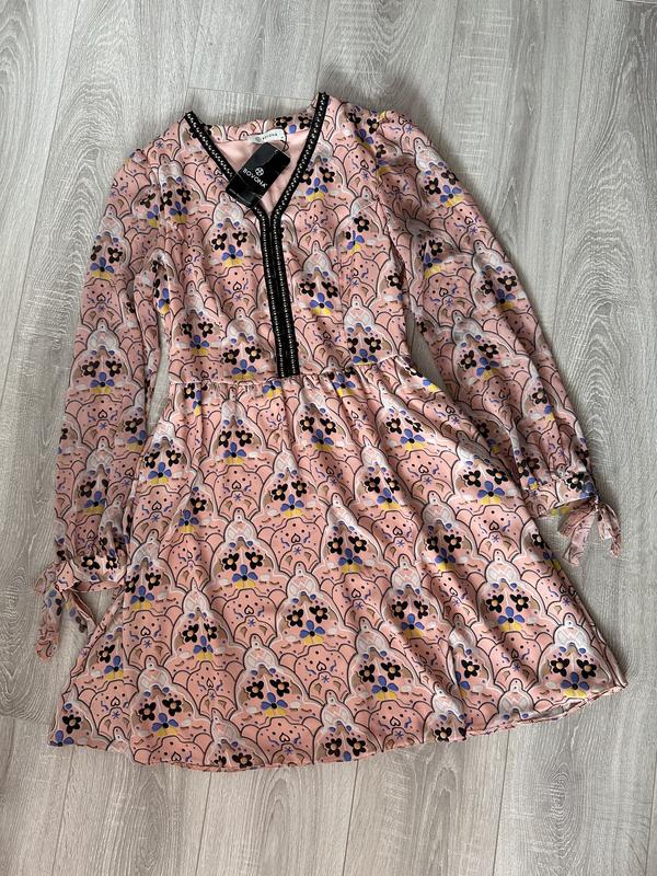 Платье с подкладкой, новое. Размер М. Интересные завязки на рукавах.