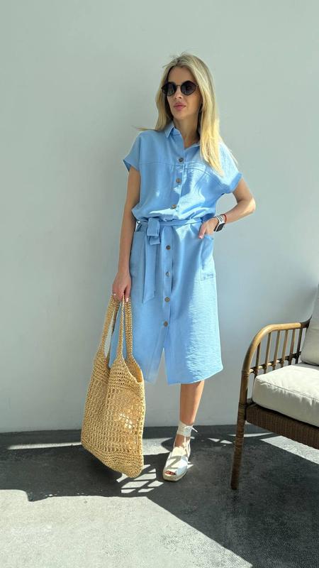 Сукня Мод. 0362 Тканина: льон жатка Размер: 42-44, 46-48, 50-52 Цвет: пудра, розовый, трава, серый, бежевый, голубой, оливка Элегантное платье свободного кроя с боковыми накладными карманами и застежкой на пуговицы - идеальный выбор для комфортной и стильной повседневной носки. Рукав цельнокроеный, короткий, со спущенной линией плеча, обеспечивающей удобную посадку, пояс съемный, фиксируется шлевками в боковых швах, подчеркивает женственность и утонченность образа