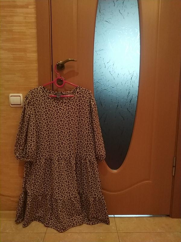 Ярусное платье в леопринт с пышным 3/4 рукавом на легкой резинке.Плечи 39 см ширина под руками 52,Длина 87, по бедрам свободно, красиво притаится