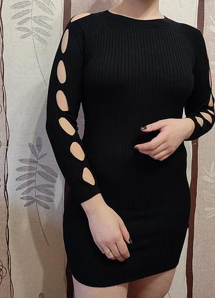 Платье в рубчик с интересными рукавами размер с-м