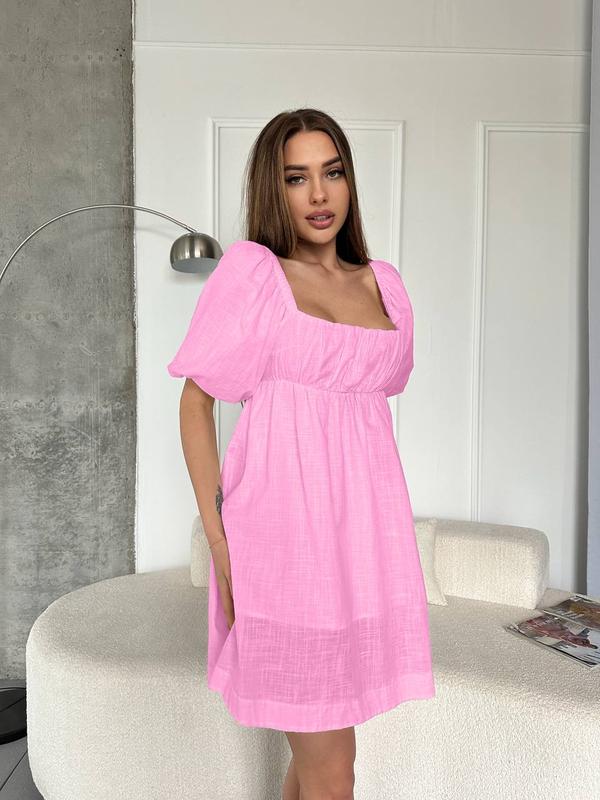 Платье мини лён с бантом на спине