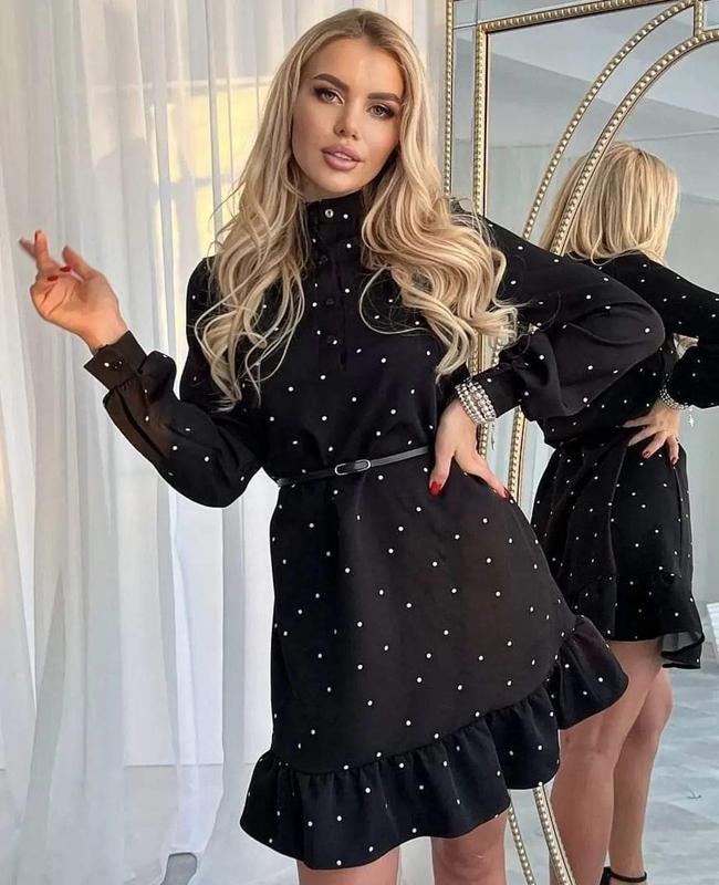 Продам: Чорна легка жіноча стильна сукня з м'якого софту в горошок на ґудзиках з довгим рукавом з поясом Розмір 46(L) - Ог: 94-98; Об: 94-100; Довжина: 97см; Довжина рукава: 62,5см Тканина: софт (м’яка та приємна на дотик) Модель вільного покрою,з довгим рукавом, манжет та планка по груді застібаються на ґудзики Можна носити як з поясом, так і без Пояс входить до комплекту Супер якість Ціна - 600 грн