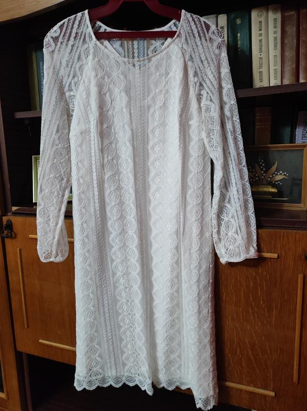 Очень красивое ажурное платье. Подклад не просвечивается. Цвет слегка молочный.Йде на размер xs-s. Вдягала один раз. Купила у Петр Сорока при 2100грн. Безопасной оплатой не отправляю.