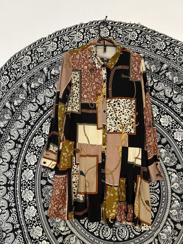Zara пэчворк мини платье с карманами и плиссированным низом с длинным рукавом на пуговицах...