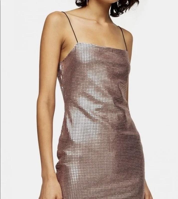 Uk6 ( xs) Цвет - розовое золото Стан красивый, только местами блестки могут быть немного заломлены, в носке никак не заметно Платье в стиле диско, нереально яркая