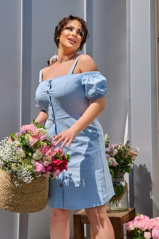 Сукня Мод: 452 Стильное приталенное платье на бретелях из льна, застегивается на пуговицы по всей длине, дополнена карманами сбоку Тканина: льон жатка Размер: 48-50, 52-54, 56-58, 60-62 Цвета: черный, капучино, фисташка, голубой Длина батал (48-50/52-54/56-58/ 60-62) : * платья – 97/99/101/103 см. * рукав - 23/23/24/24 см. Фактические замеры изделия: р. 48-50 ОГ-ОТ-ОС: 96-82-106 р. 52-54 ОГ-ОТ-ОС: 106-92-114 р. 56-58 ОГ-ОТ-ОС: 114-102-122 р. 60-62 ОГ-ОТ-ОС: 122-110-130 При подборе размера в объеме груди добавляйте + 4-6 см за счет вытачек и легкой растяжимости ткани! *рост модели на фото - 173 см. *параметры модели на фото ОГ-ОТ-ОС: 110-88-111, одетая в р.52-54 белу 850.00 грн
