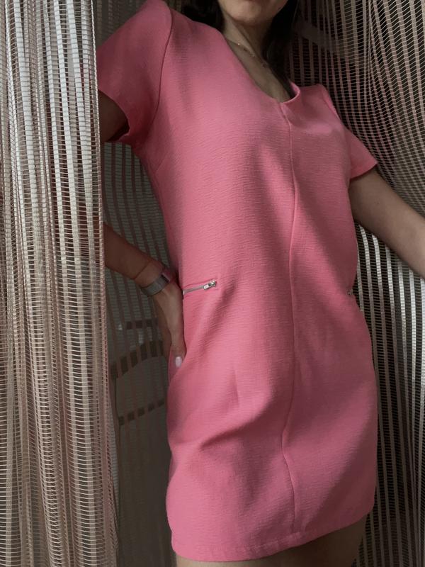 Стильное вечернее офисное классическое платье летнее легкое с коротким рукавом розовое неж...